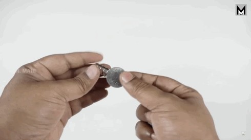 当然你还可以把硬币换成纽扣、小纸片、树叶,任何扁平的,比杯口更小的物体都可以。