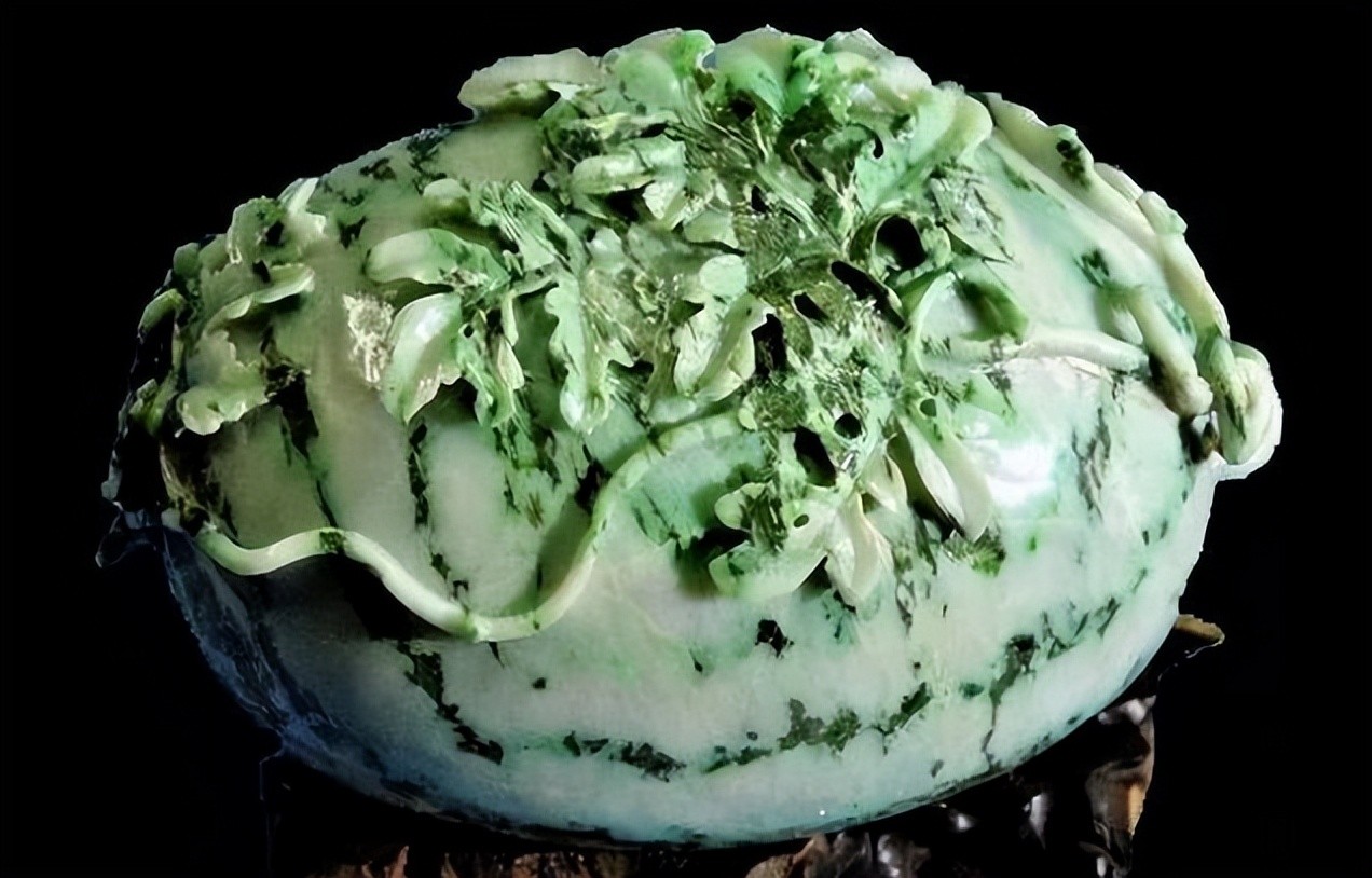 当他附身去捡的时候,不由得大吃一惊,在两片猪肉下面覆盖着一个饱满的西瓜,当他完全挖出后,才发现那不是水果,而是慈禧那颗价值6亿的翡翠西瓜!