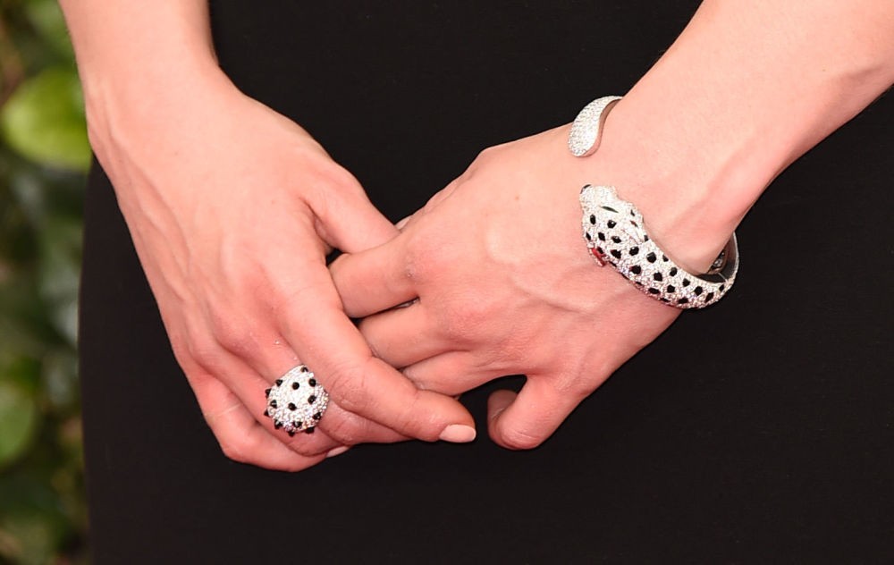 女演员艾米莉亚·克拉克在洛杉矶美国演员工会颁奖礼上手戴卡地亚珠宝。