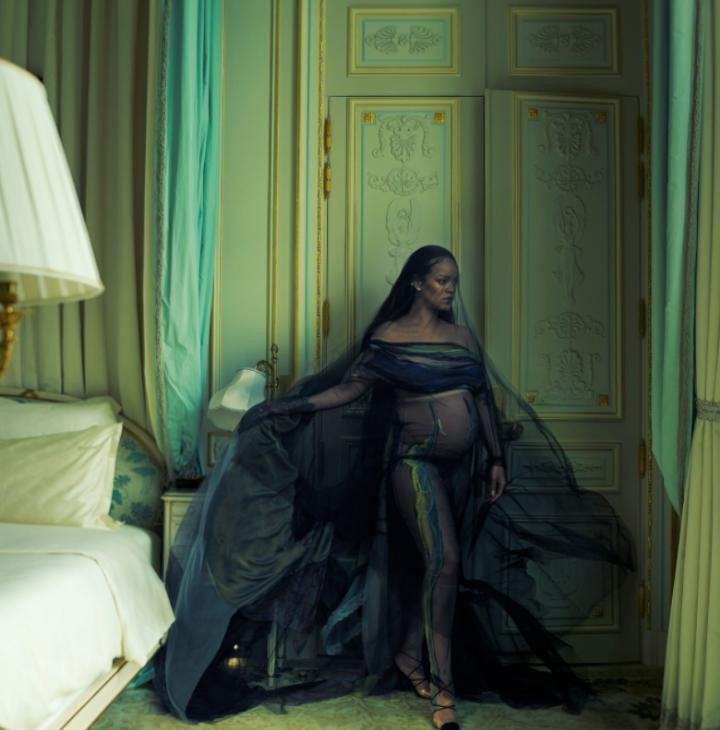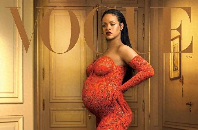怀孕的蕾哈娜登上《VOGUE》5月号封面,造型相当火辣。(图)
