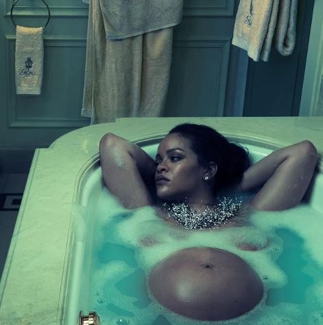 还有一组照片,蕾哈娜惬意泡在浴缸里,胸前重点部位则是仅靠泡泡浴来遮掩,巨大孕肚浮出水面,成为画面焦点。蕾哈娜受访时表示,希望能重新定义有关孕妇的“体面模样”,她接著说“我的身体正在做著不可思议的事情,我不会为此感到羞耻,这时候应该要感到庆幸,所以为什么要隐瞒怀孕呢?”,一席话道出火辣传达的背后真相,让不少女性相当感动。