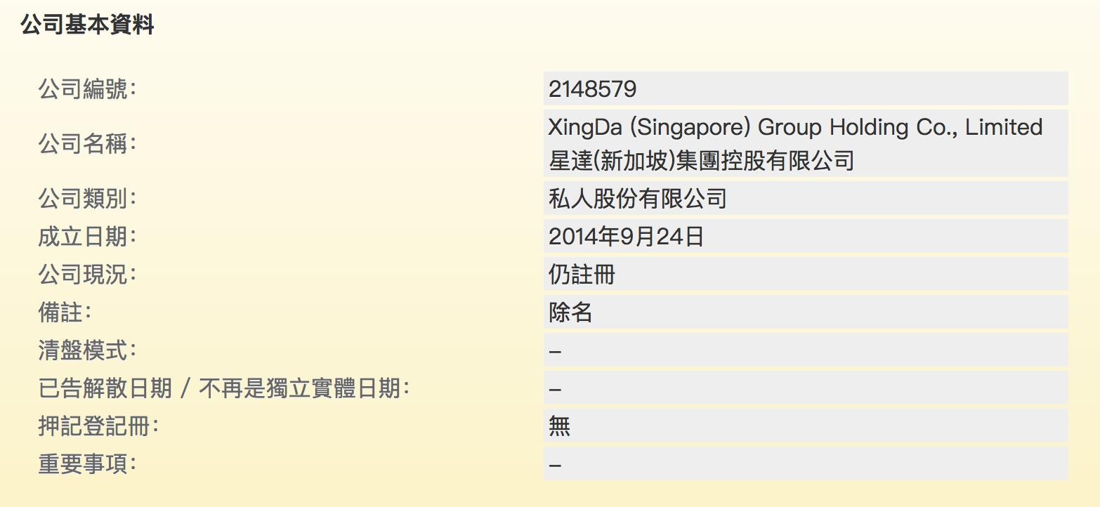官网介绍称,百金贷是北京荣盛信联信息技术有限公司旗下的一家专注于汽车领域的互联网金融平台,成立于2014年12月,总部位于北京,官网显示,借贷余额为10亿元。2017年8月,获得星達(新加坡)集团控股有限公司1000万美金的战略入股投资。关于该海外投资公司,在香港公司注册处查询网站,存在一家在香港注册的星達(新加坡)集团控股有限公司,该公司于14年9月成立,公司现状显示仍注册。