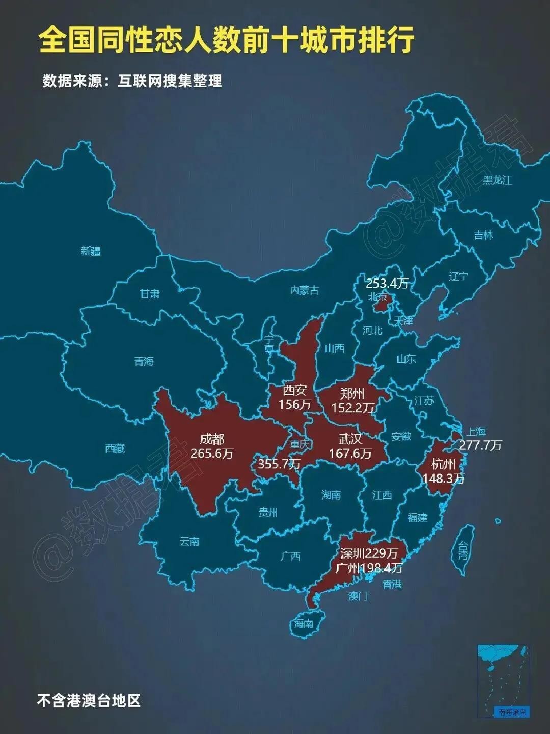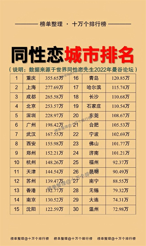 今年全国同性恋排行中,重庆勇夺第一,成都以第三名的成绩傲视群雄
