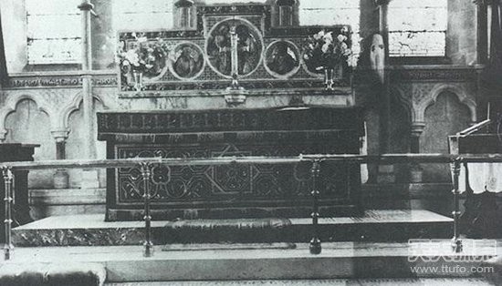 11. 大多数的灵异照片跟重复曝光或其他摄影手法有关,但是这张在北约克郡教堂内部拍下的照片显现出的影像似乎不能用常理解释,照片中能清楚看到一个穿着修道士服的人,曾有众多专家研究过这张灵异照片却都找不到合理的说词,也因此这张照片成为史上最知名的灵异照片之一。