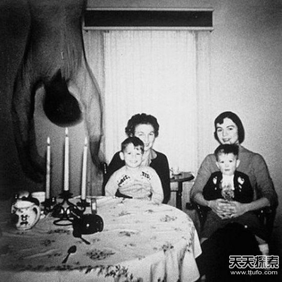 5. 库伯一家人搬入位于德州的新家后,全家人打算在客厅拍一张照片,没想到竟然有一具尸体从天花板掉了下来。许多人曾针对此照片调查后,但也没个令大家信服的答案。