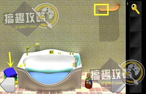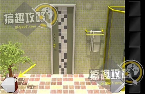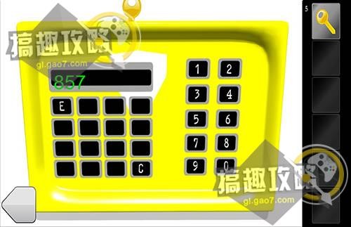 在浴缸上的密码器上输入密码857再点击E,拿到最后一把钥匙。