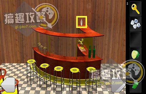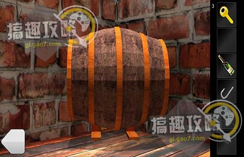 点一下酒瓶获得线,将线与钩子结合拿到第四把钥匙。