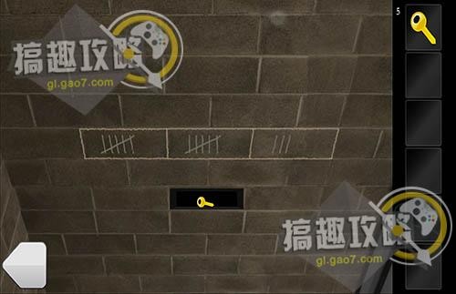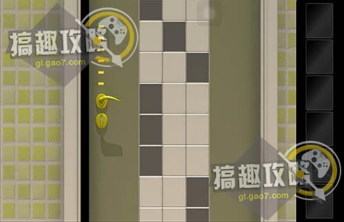 根据形状提示在左边墙上调整,拿到第三把钥匙。