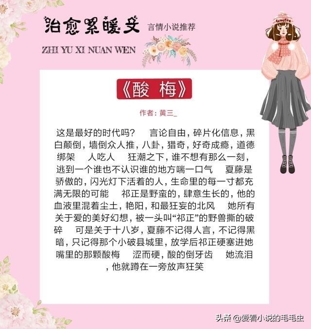 大家好,我是毛毛虫,十年书龄小仙女,每天为大家推荐各种好看的言情小说。希望大家能够喜欢,喜欢的话可以分享给朋友,或者收藏起来。若大家有什么想看的书,可以在下方留言哦。本期整理的是强推4本治愈系言情小说,世界以痛吻我,我却报之以歌