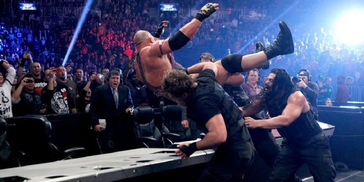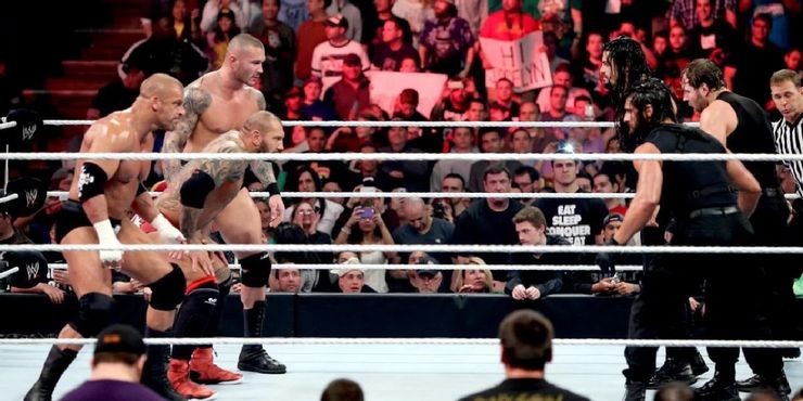 2014年,在皇家大战上,安布罗斯,赛斯.罗林斯,罗曼.雷恩斯都是第一次参加这场比赛。但是谁也没想到的是,罗曼雷恩斯亲手淘汰了他的两个好兄弟,这也导致了“圣盾军团”的分裂开始。