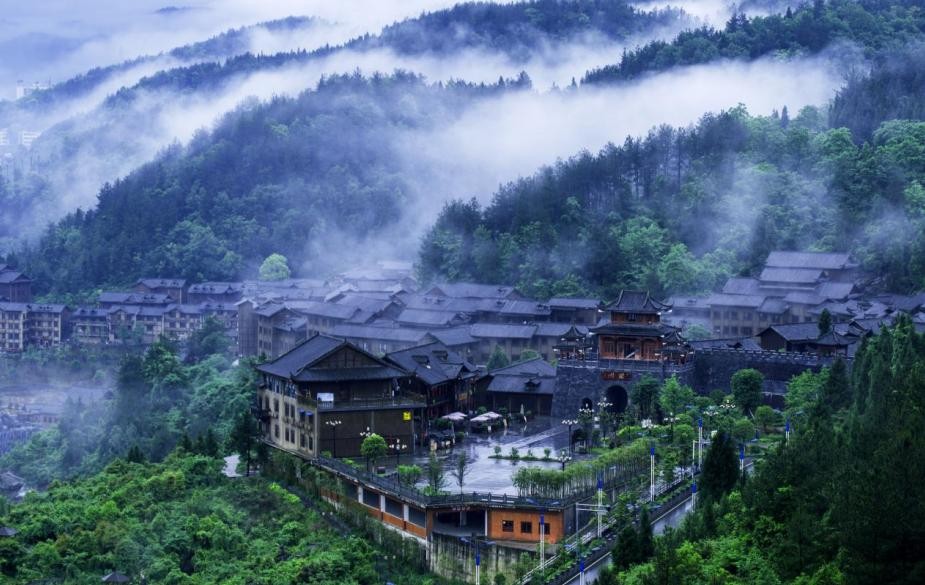 酉州古城 位于酉阳县城的北端,是在原古城的位置上复建而成,是展现土家建筑、历史、民俗、文化的一座“博物馆”。总建筑面积3万平方米,由38栋独具特色的土家吊脚楼依山而建。古城内林立着各色客栈,酒肆、旅游商铺。据《酉阳直隶州总志》记载,酉州古城始建于明朝洪武年间,原是酉阳第十二代土司冉兴邦修建的土司衙门,后经10余世土司的传承修缮,一度成为渝鄂湘黔结合部的政治、经济、文化中心。雍正十三年,清政府为了削弱土司的势力,实行“改土归流”,废除土司的统治,改为汉族流官制管理。自此后,酉阳古城失去昔日统治中心的地位,慢慢荒废没落。