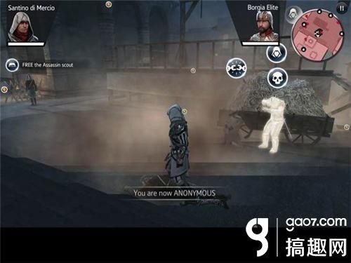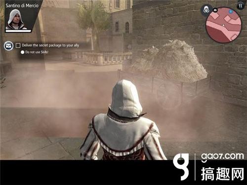 7.任务中刺杀结束需要你进入不被发现状态,有这样几个方法1.躲在草堆等. 2.隐匿在人群中 3.要是找不到躲避物,可以用烟雾弹迅速匿名