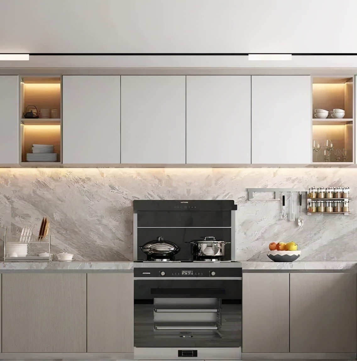 所以计算下来,集成灶所占据的空间要比普通的灶台更大,目前占地面积会很大,还需要占据家里的吊柜空间,这样吊柜里面就不能放置厨具了,厨房的储物空间也会变小。