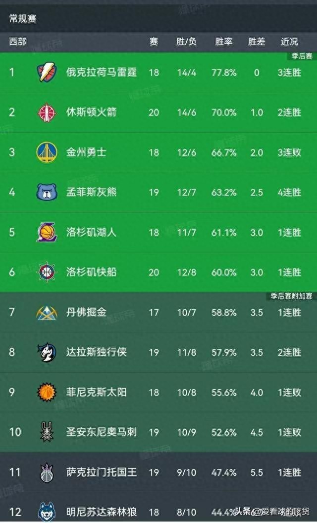 雷霆险胜勇士!西部排名大变化,雷霆第一!火箭第二!湖人第五