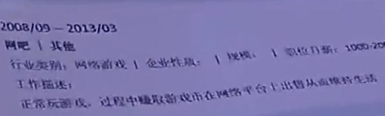 他毫不避讳地把自己这些年的荒唐经历放在了简历中。然后你的工作经历里,这个工作描述是正常玩游戏,过程中赚取游戏币,在网络平台上出售,从而维持生活。
