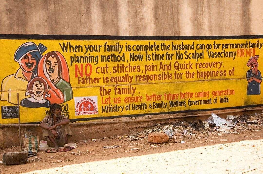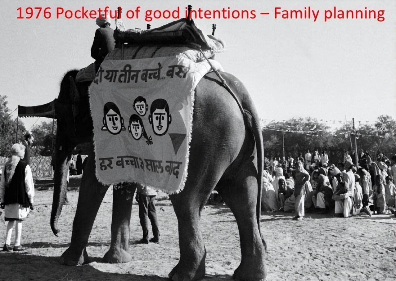 西方人口学家基于历次印度饥荒的教训,建议印度政府采取控制人口的措施。听从这一建议,1952年印度成立计划生育委员会,旨在为育龄妇女提供避孕服务,同时通过各种宣传口号倡导人们生育观念的转变。然而,20年过去,1975年印度再次人口普查,却发现人口激增至6.13亿,几乎翻了一番,增长率高达61%。
