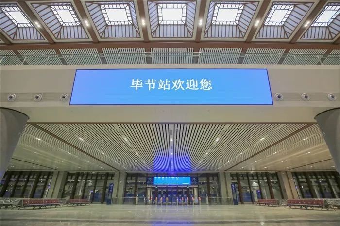 毕节站是成贵高铁云贵段规模最大的车站,站房整体面积约2万平方米,预计日均发送量15000人。