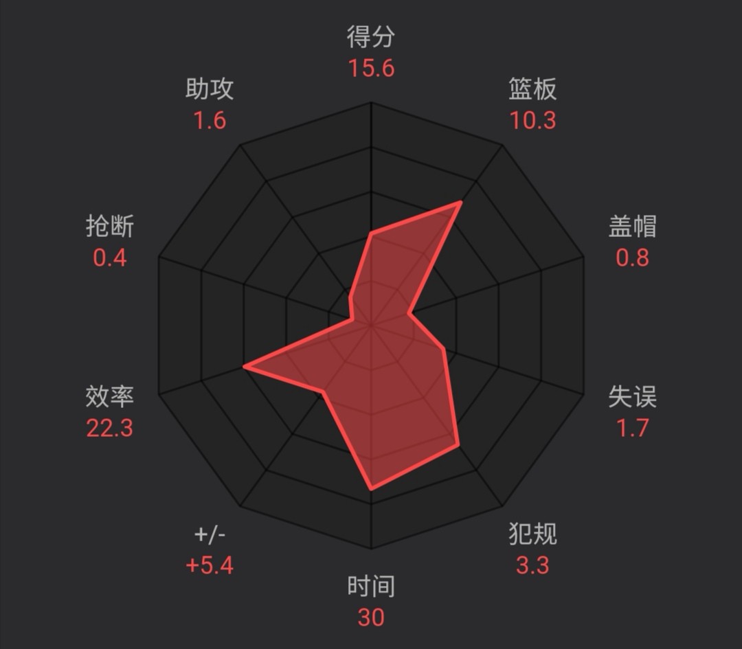 本赛季前三十轮,辽宁男篮取得了20胜10负的战绩,排名积分榜第3位。这与伤愈复出的韩德君有相当大的关系,正是韩德君在内线的强大统治力,辽宁队才会取得了如此优异的战绩。本赛季至今韩德君为辽宁队出战了28场比赛,30.1分钟的出场时间里能够贡献15.6分10.3个篮板1.6次助攻0.4次抢断0.8次盖帽,罚球命中率75.8%,+/-值高达+5.4。