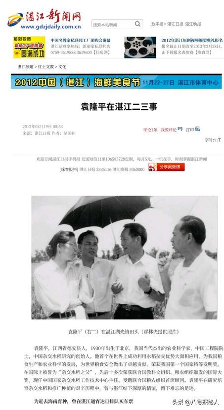 【信息来源:百度百科-袁隆平-主要成就、湛江日报2012年3月19日发布】