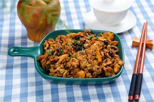 《食材》猪肉末100克、茄子、蒜末、玉米淀粉、豆瓣酱