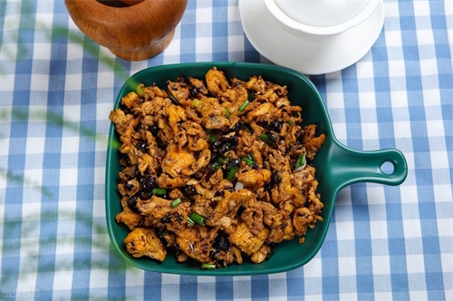 4、最后倒入鸡蛋翻炒均匀,出锅前撒上葱花,香喷喷的大酱鸡蛋就好了