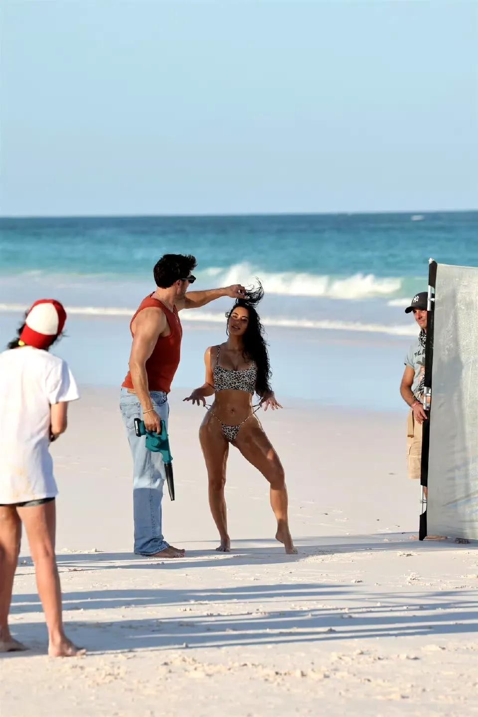 当金卡戴珊在沙滩上翩翩起舞时,整个画面都变得生动起来。海风轻轻吹拂着她的长发,裙摆随风飘动,仿佛在为她伴舞。这一刻的她仿佛与大海融为一体,成为了这片沙滩上最美丽的风景线。