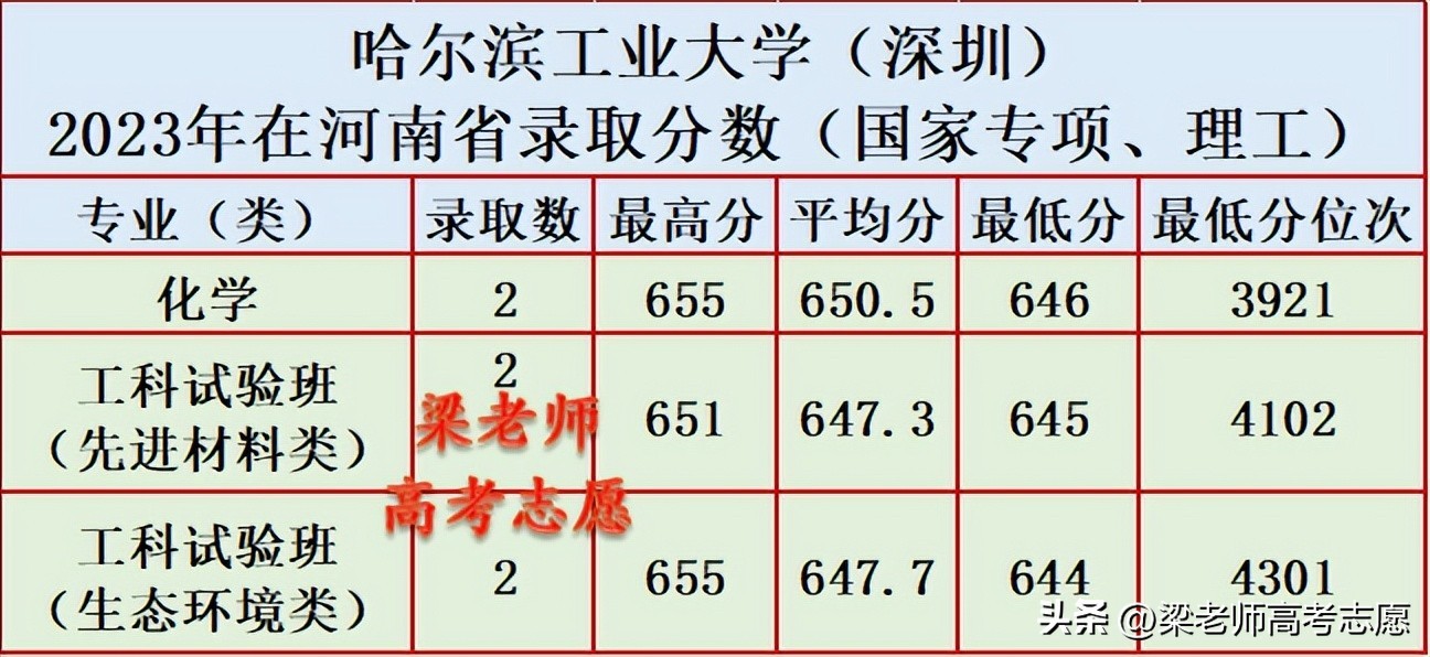 哈尔滨工业大学(深圳)2023年在河南省分专业录取分数来了
