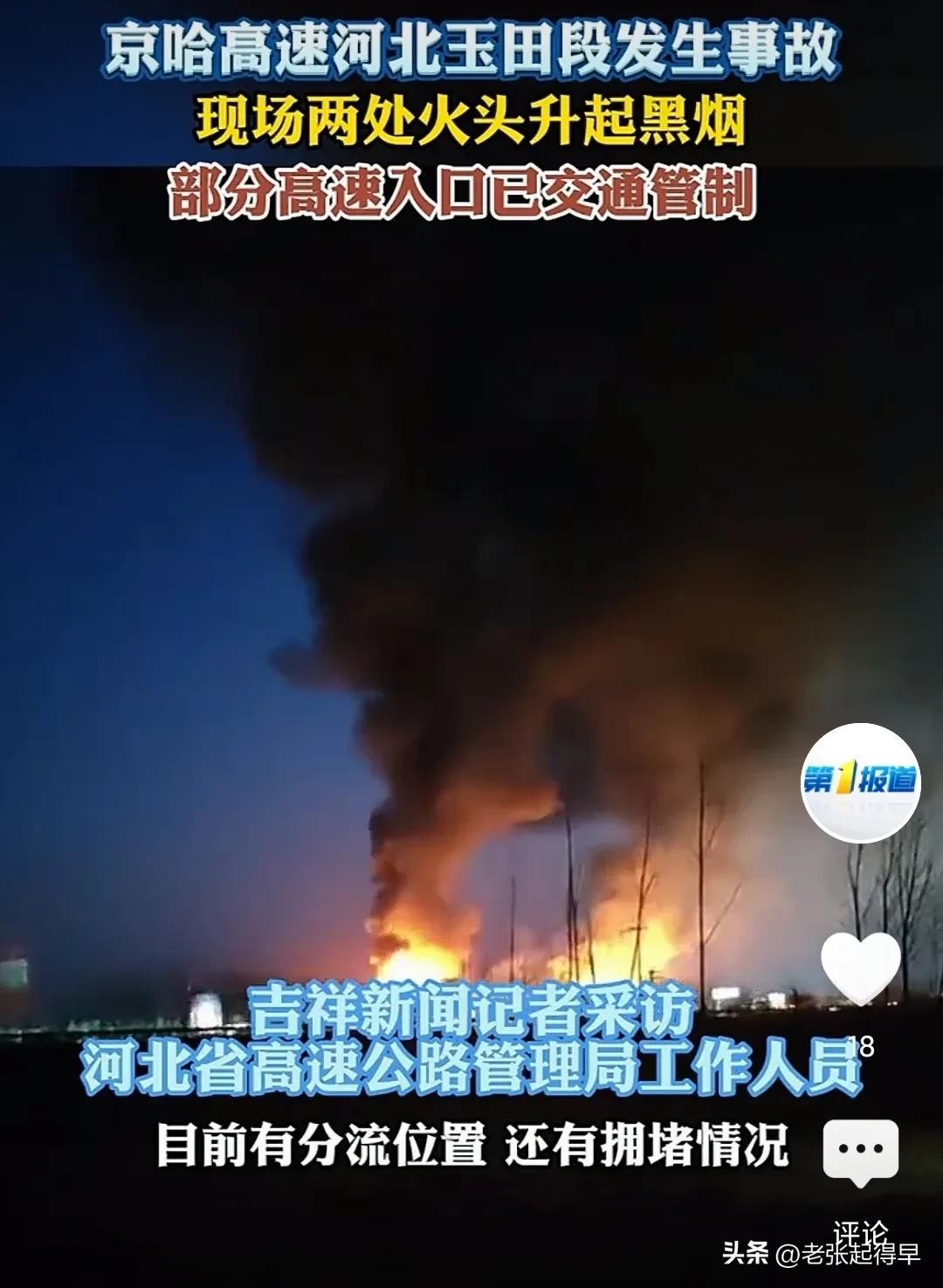 北京方向!京哈高速玉田段发生交通事故!火光冲天,有车只剩骨架