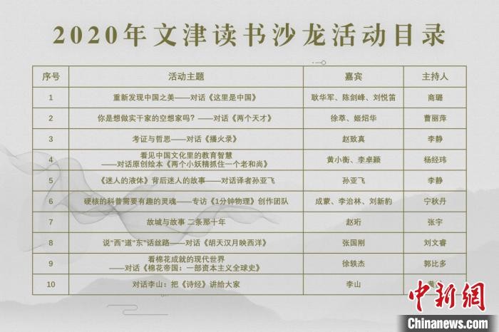 2020年“文津读书沙龙”活动目录。国家图书馆供图