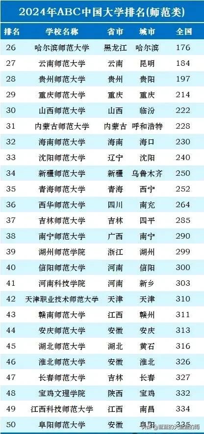 2024中国各类别公办大学排名!师范类、医药类、财经类、政法类…
