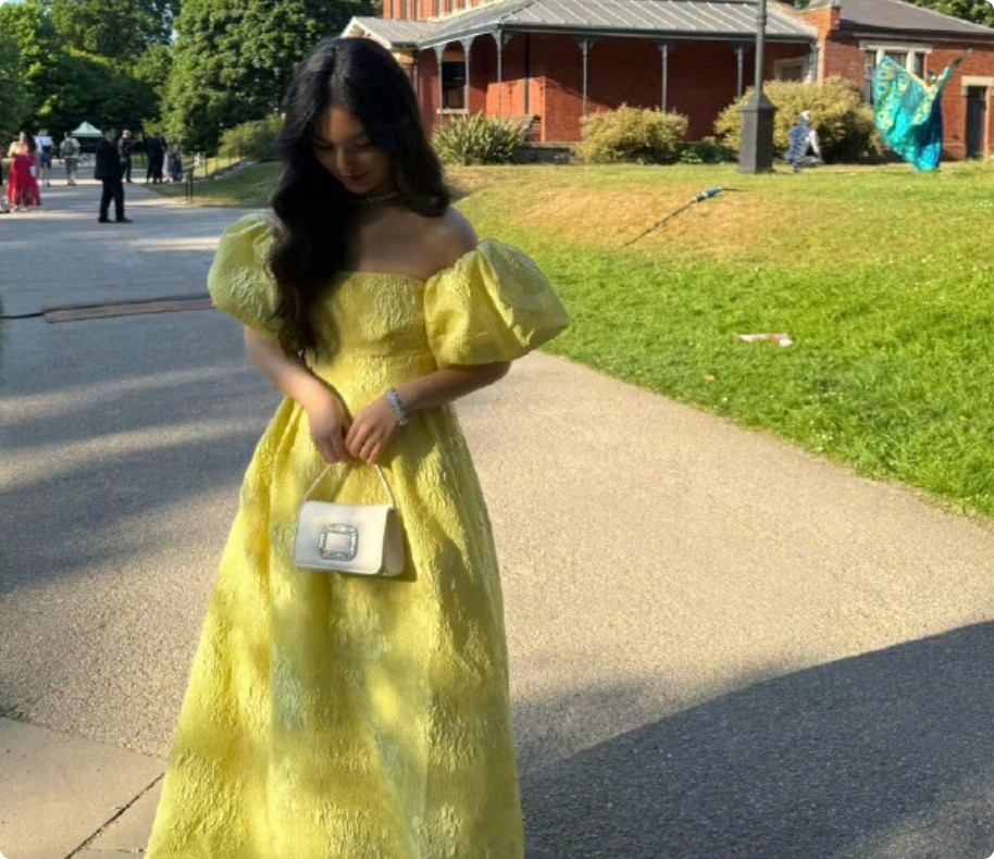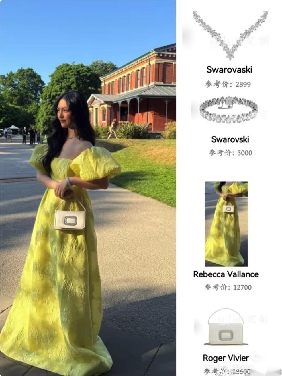王诗龄上身的嫩黄色礼服是比较小众的品牌,随身携带的包包也只是不到两万的包包。