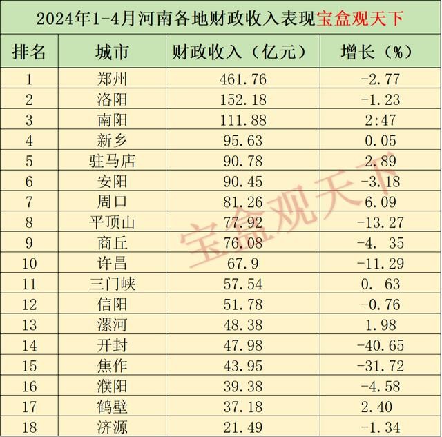2024年年中后,河南各市公布了2024年1-4月的财政收入数据,这可是衡量一个城市经济实力的硬标准,所以人们也据此对河南各市的财政收入进行了排名。这份榜单可不简单,它不仅反映了各市的经济实力更折射出了河南省整体的发展态势。