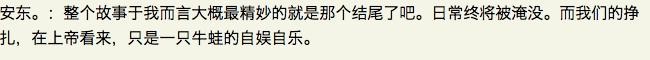 柒诺:谢丽尔分享了她的感受,和很多其他人的感受——有时候生活当头棒喝,逼着人走出另一条道路,无所谓幸或不幸,只是要往前走、重拾快乐。