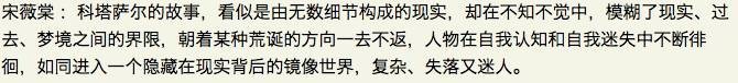 司令君 :在看这本书的时候,我仿佛成了一个疯子,一方面沉迷于字里行间的阅读快感,另一方面渴求着剧情再一次让我得到惊吓,这个惊吓是你根本无法预计的,矛盾的是这种惊吓并不可怕,随着重重谜团被拨开,我想我看到的真相,一定和其他人不一样。