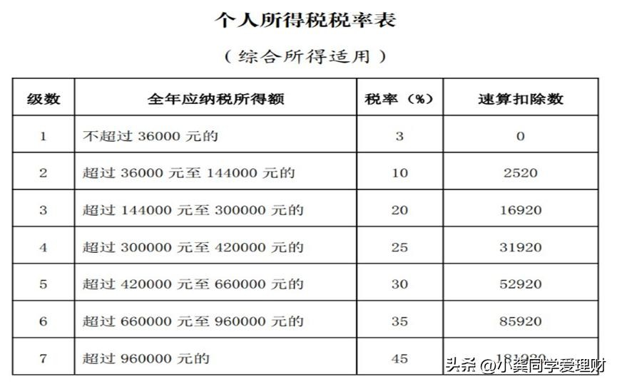 个人所得税年度税率表