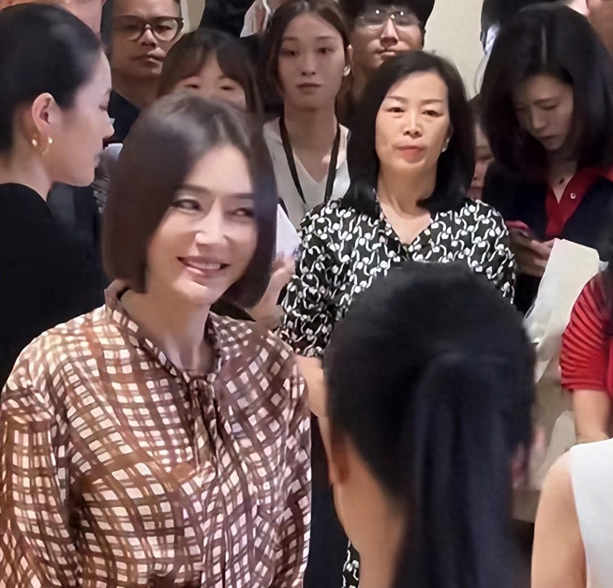 有人甚至将秦岚与旁边的一位普通女性进行比较,这位女性穿着黑白格子衬衫,看起来完全没有经过整形,她的自然老化之美引人注目。这样的比较让秦岚被戏称为“不如旁边的大妈”。