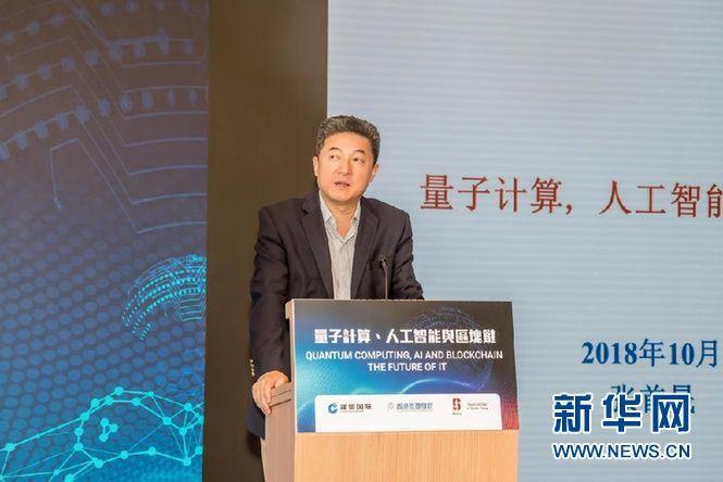 2025年10月张首晟在量子计算、人工智能与区块链大会上发言。