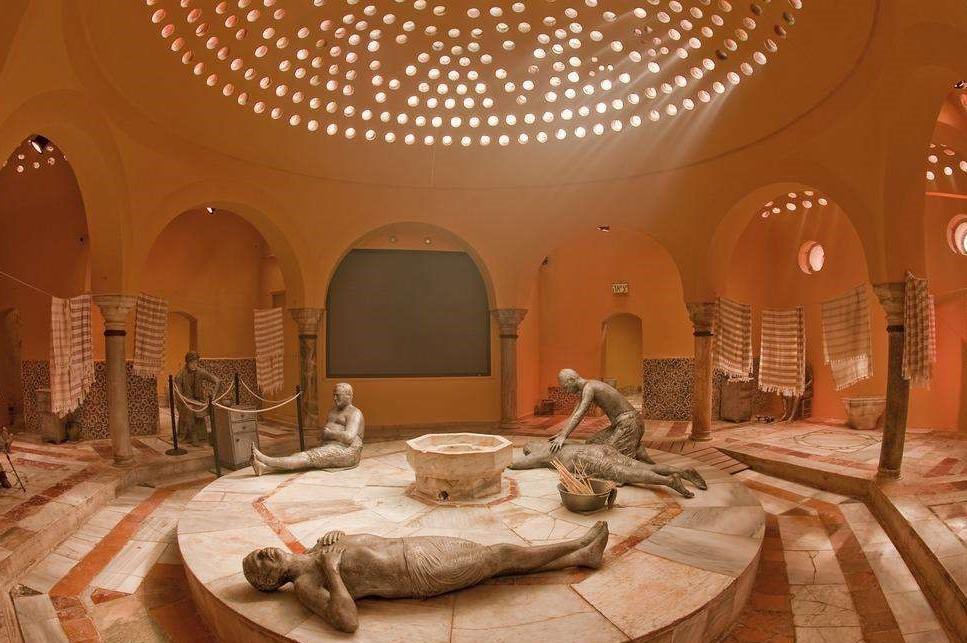 正宗的土耳其浴室都是和清真寺修建在一起,这样的布局体现出了土耳其浴的最原始用途穆斯林做礼拜之前的净身。一个穆斯林一天要做5次礼拜,因此,土耳其人也就与浴室结下了不解之缘。